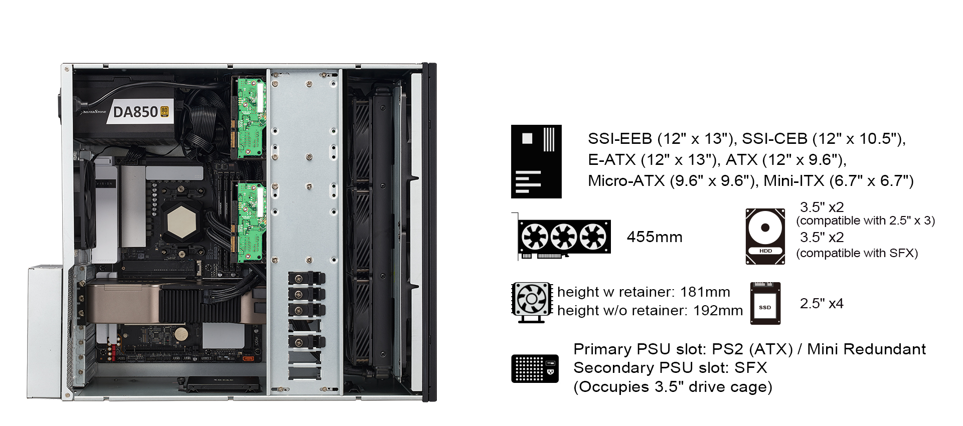 - Secondary PSU can be installed if 3.5" drive cage is to be left unoccupied