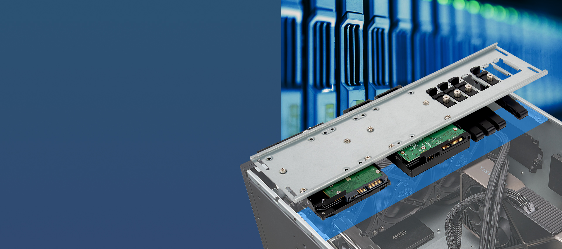 To avoid any unforeseen damages to either the motherboard or the graphics cards, an expansion card retainer with storage drive mounting holes is included to prevent sagging of graphics cards while maximizing space utilization