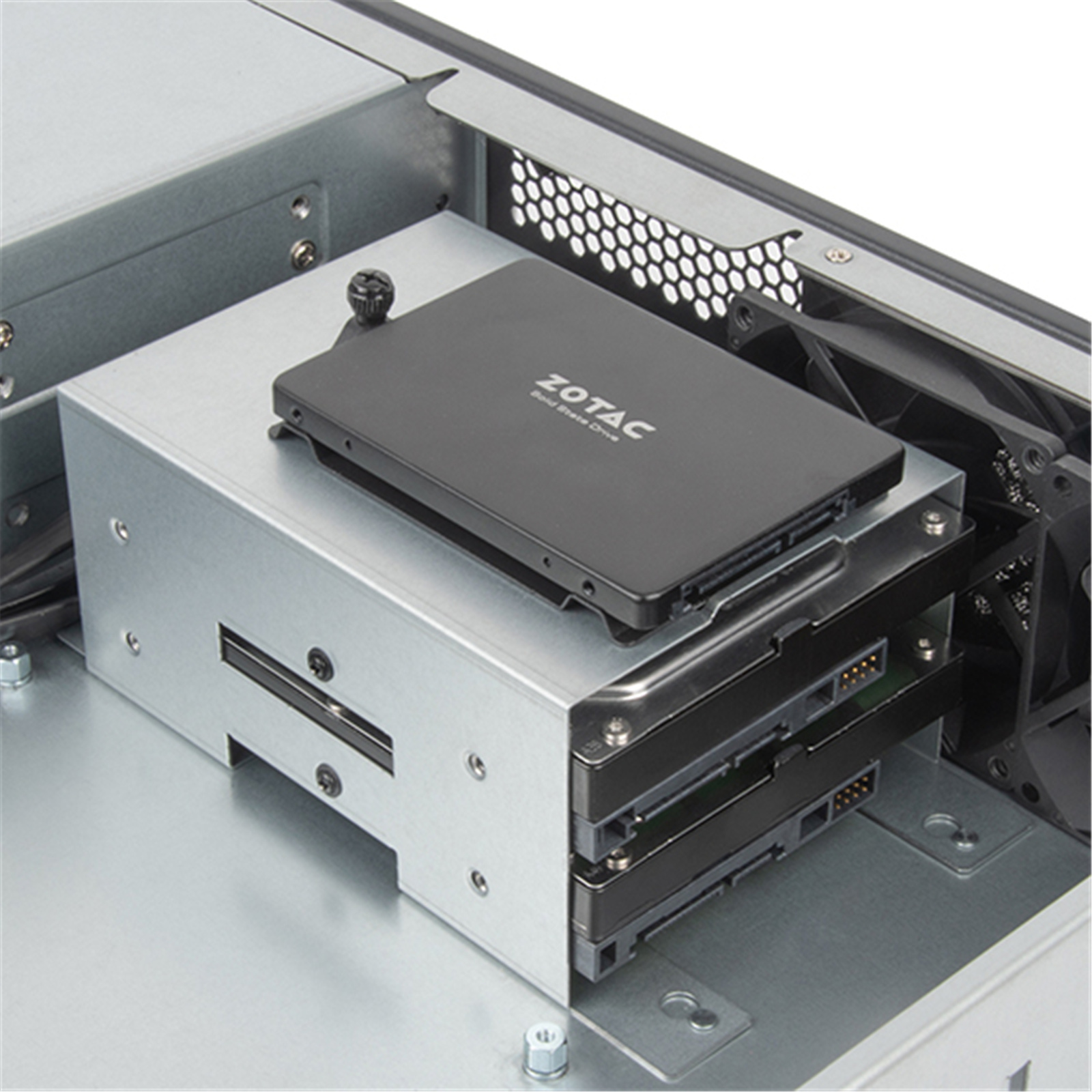 A built-in fan bracket at the front supports 2 x 8025mm fans which supplies plentiful airflow for a 2U form factor system.
