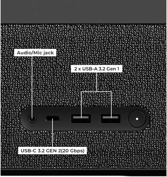 2 x USB-A 3.2 Gen 1, USB-C 3.2 Gen 2 x 2, Audio / Mic jack x 1, Power Button