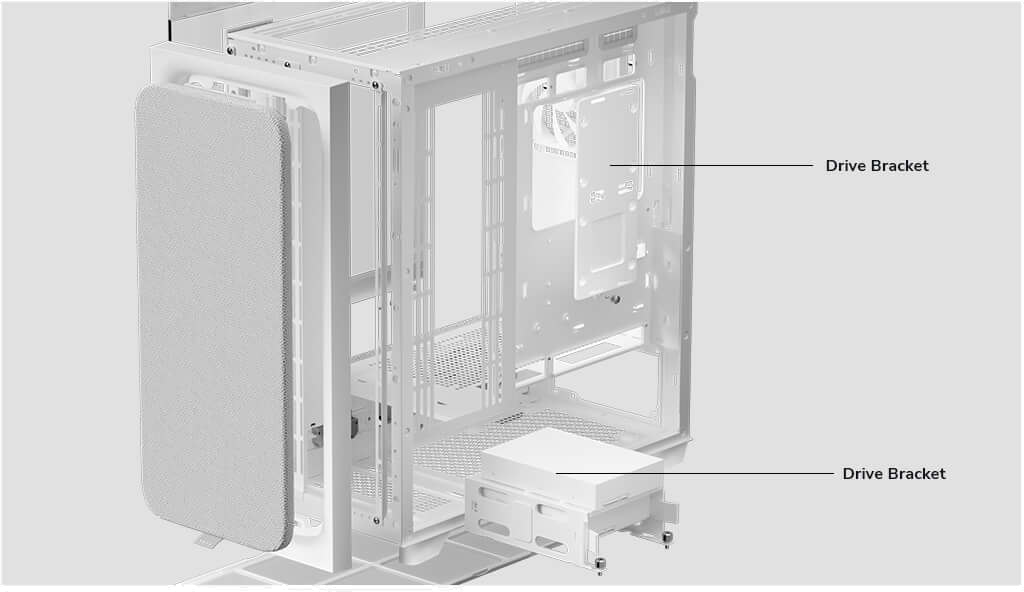 Front panel supports 3 x 120 mm (with pre-installed Cross Flow Fan mounted) or 2 x 140 / 160 / 180 / 200 mm fans (require removal of Cross Flow Fan)