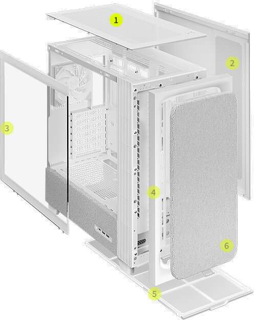 TCF Cross-Flow Fan - CPU Cooler Support up to 170mm - GPU Support up to 420mm - 7x PCI Slots - 360mm Radiator Support - Front I/O: 2x USB - 1x USB-C - HD Audio