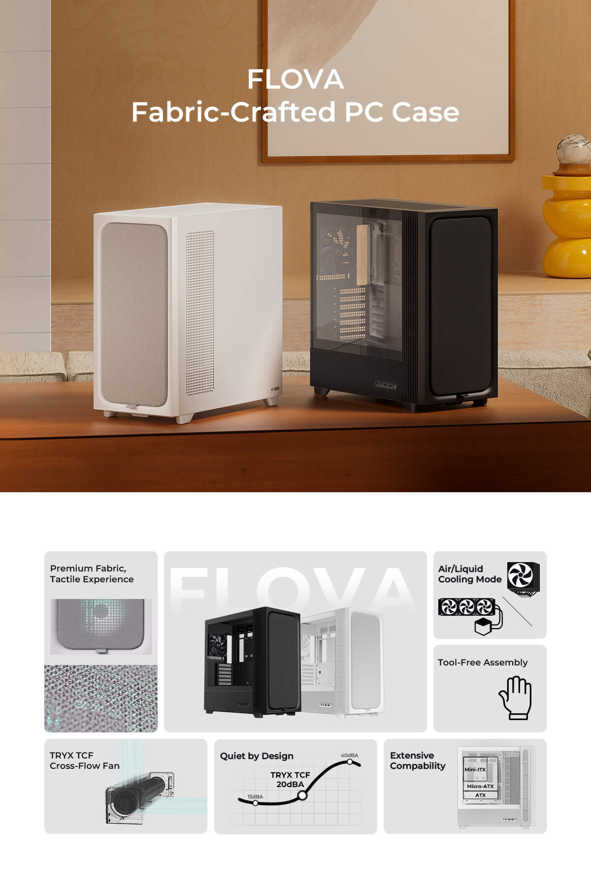 TRYX FLOVA F50 ATX Mid Tower Case - Black - Fabric Finish
