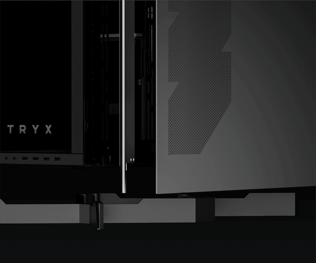 Luca's unique x-shaped base design elevates the chassis by 4cm, significantly enhancing air intake improving cooling while creating a floating visual effect