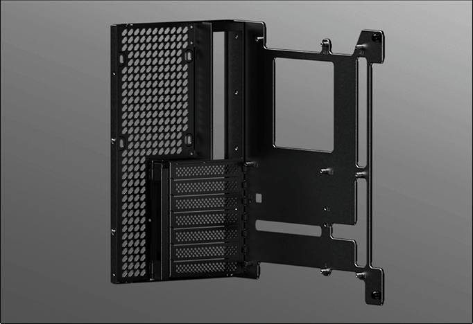 The adjustable motherboard tray eases installation by allowing the motherboard, cpu and cpu cooler to be mounted independently.