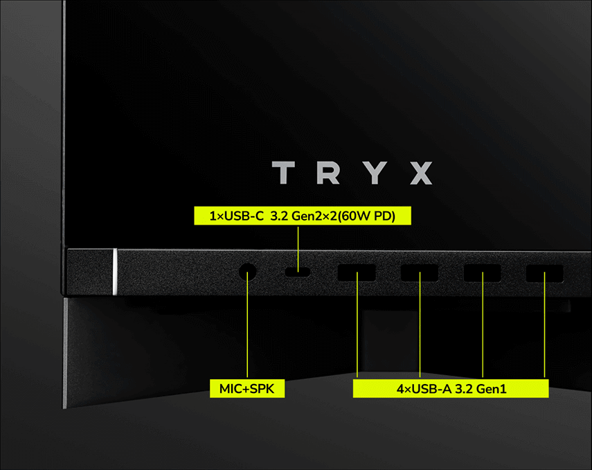 1 × Power button, 4 × USB 3.2 GEN1, 1 × USB 3.2 gen 2x2 TYPE C, 1 × Audio/Speaker