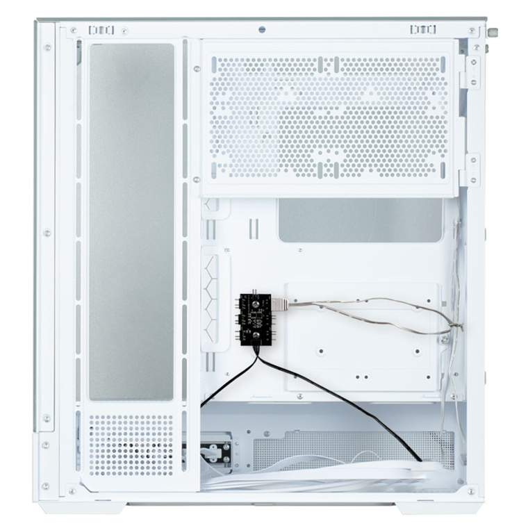 Full-Mesh Side Panel exhaust vent above the motherboard for optimized airflow.
