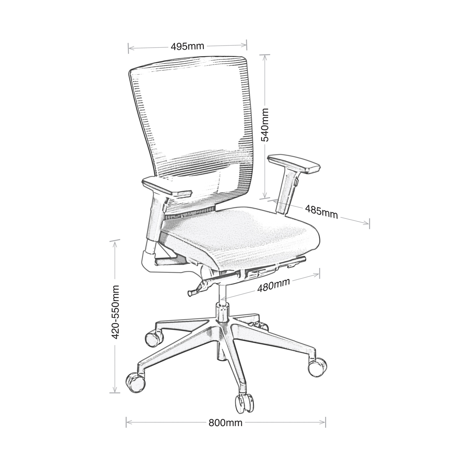 - Synchro mechanism: dynamic back-with-seat tilt, gaslift height adjustment, tilt tension adjustment, seat tilt restriction option
