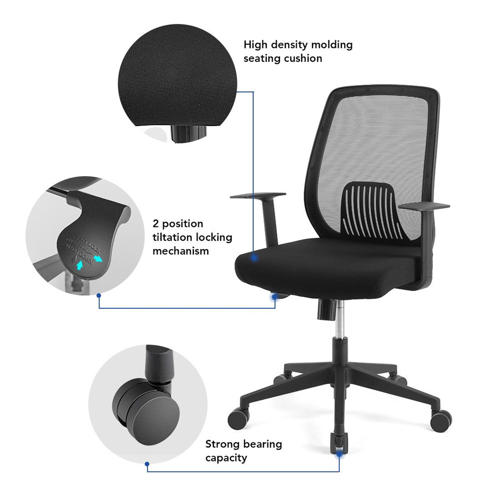 Featuring reliable ergonomic support, the breathable mesh back and passive lumbar support release your body pressure both at home & office.