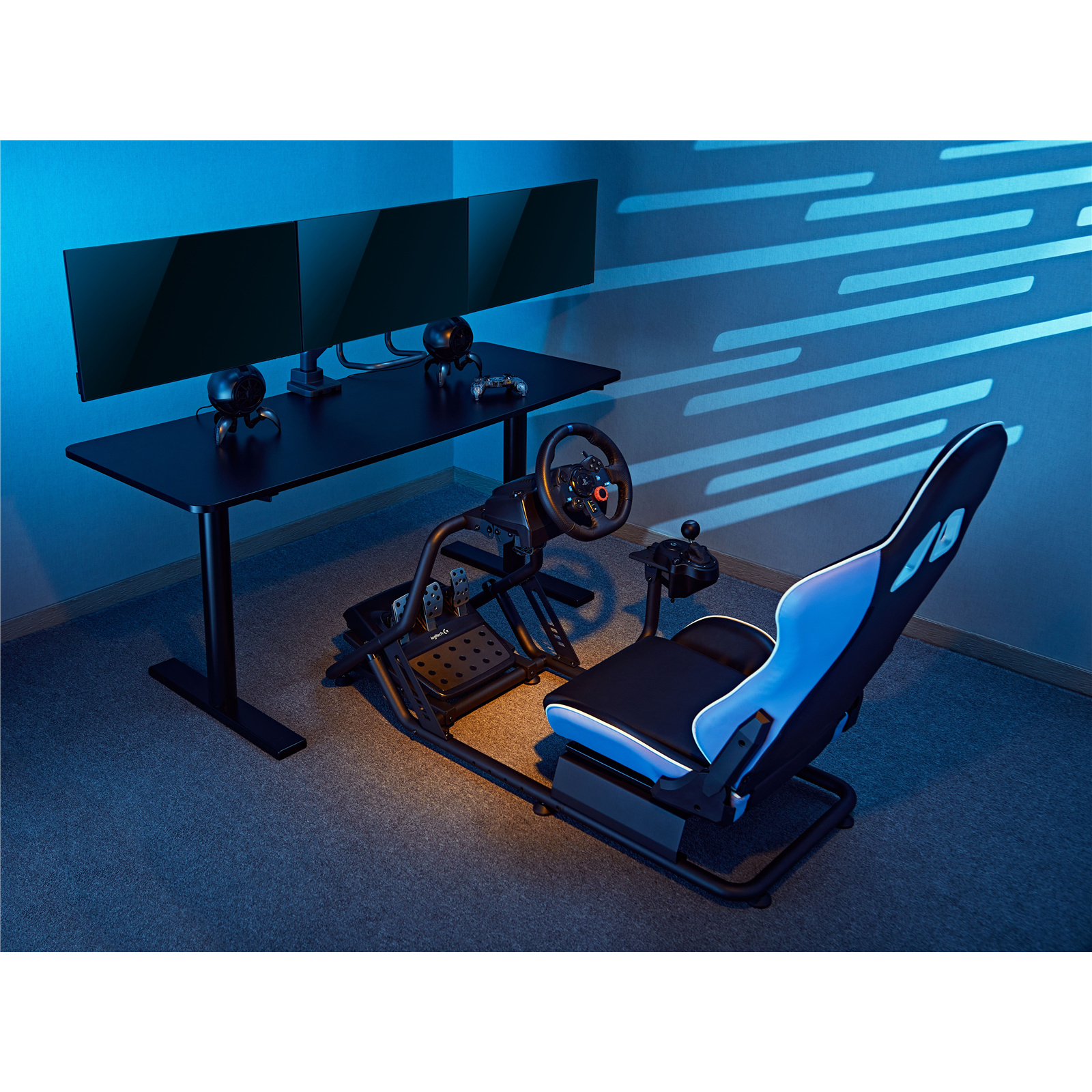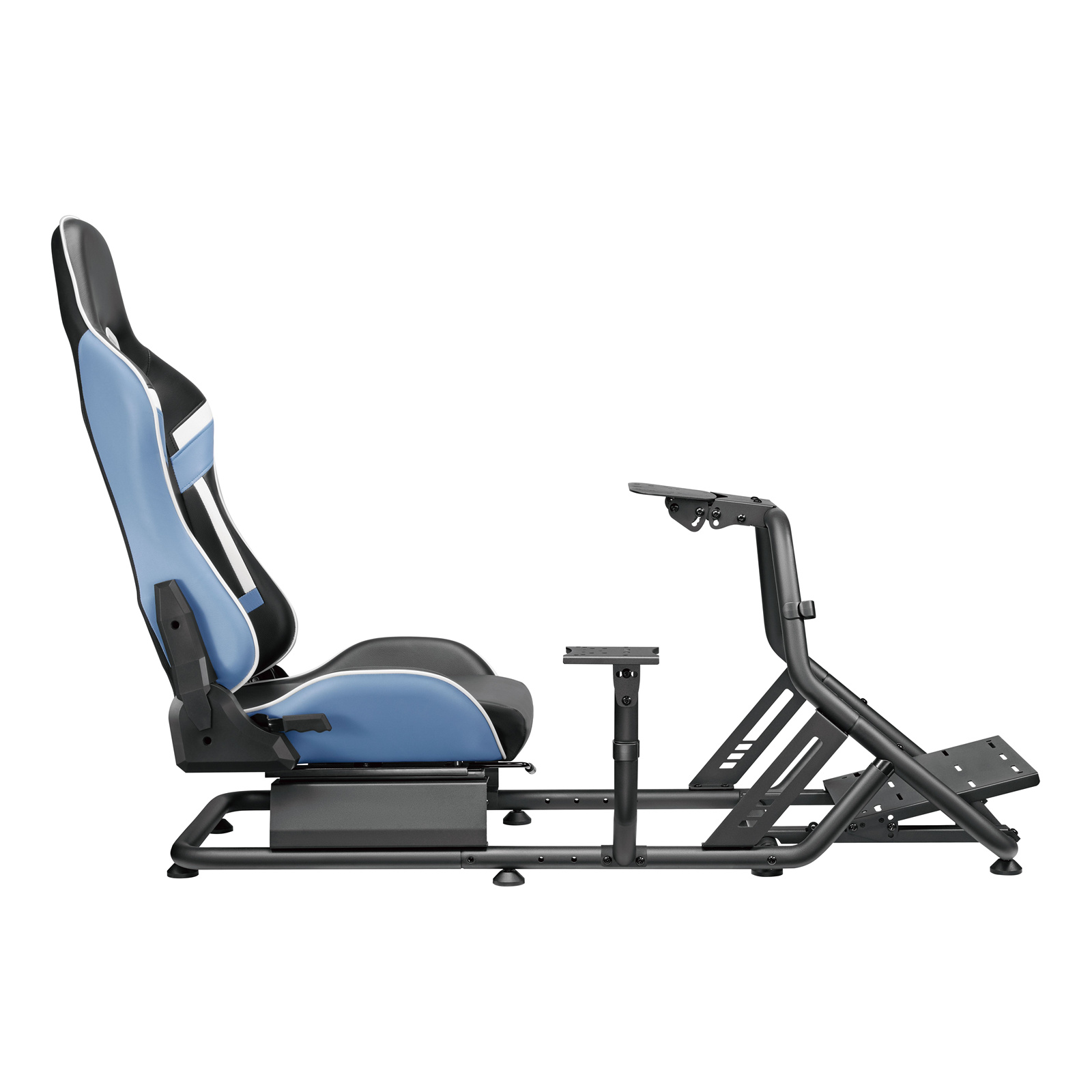 The steering wheel mount, pedal mount and the racing seat can be fine adjusted for different gamers usage. The user can also install the gear shifter mount either left or right for preference. The pre-drilled mounting points provide compatibility with most major wheel and pedal brands including: Logitech, Fanatec, Thrustmaster and more.