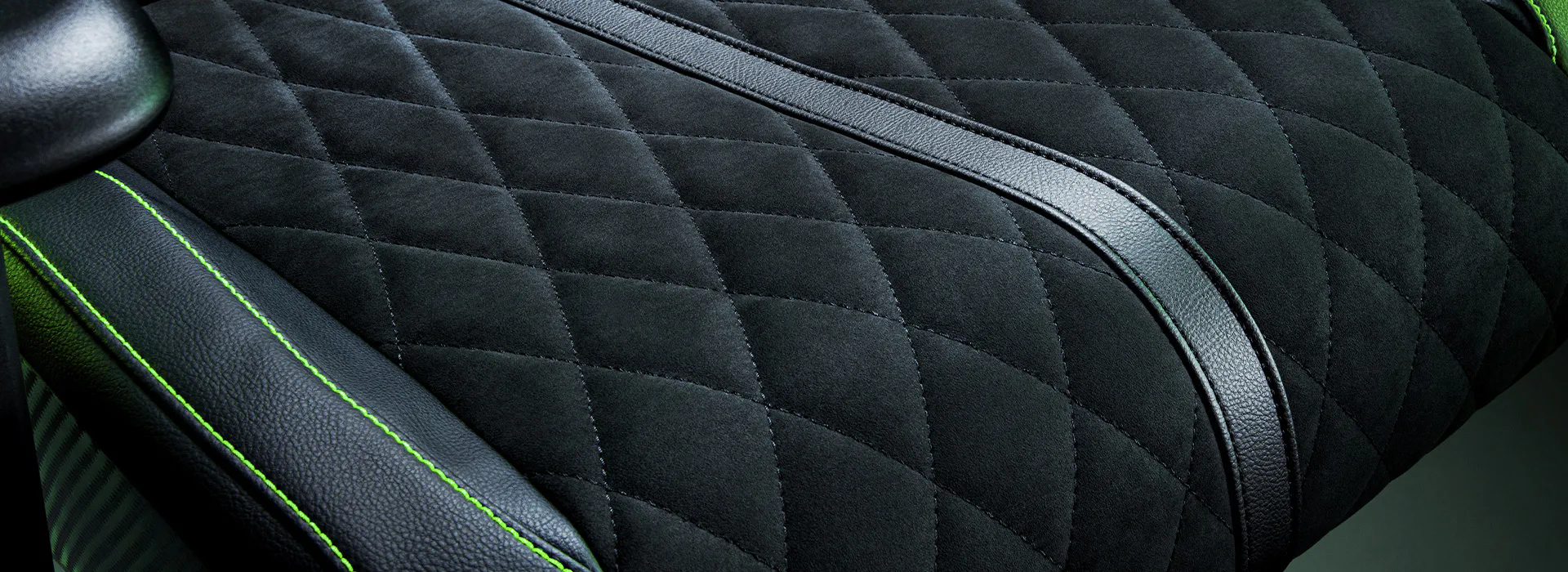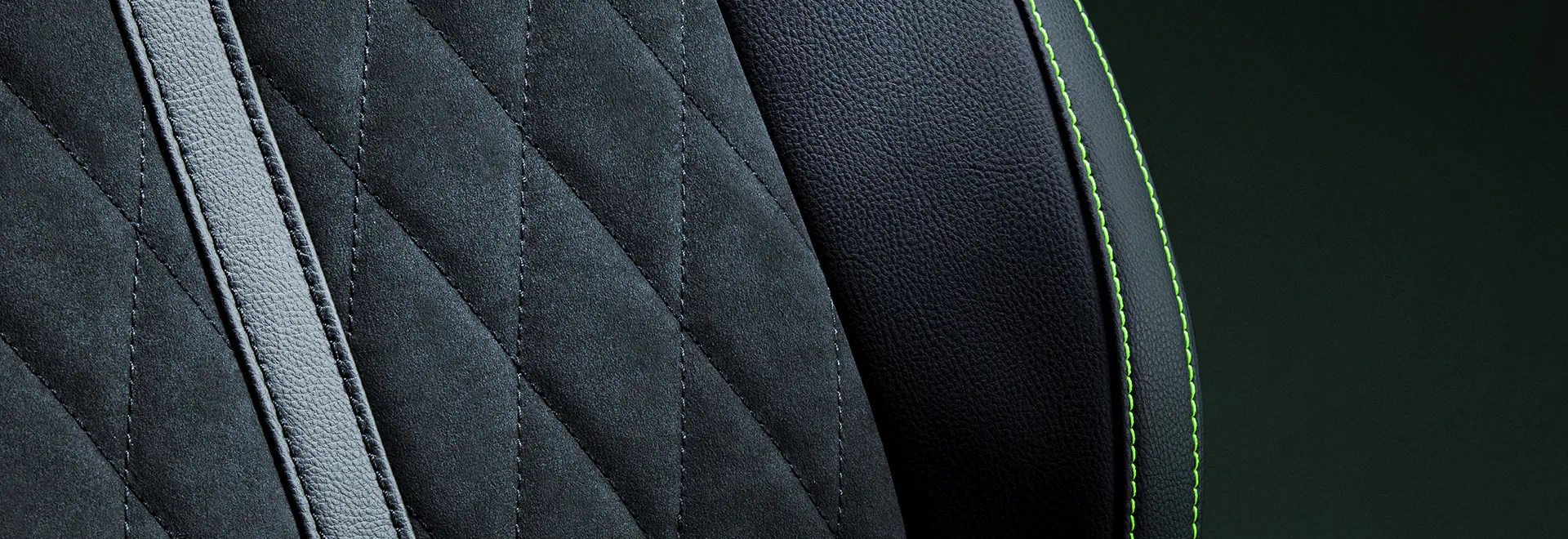 Its unique dual-textured finish achieves the right mix of comfort and durability-featuring plush, soft touch Alcantara material on the backrest and seat base for a premium feel, and outer edges lined with smooth sustainable leatherette to better withstand daily wear and tear.
