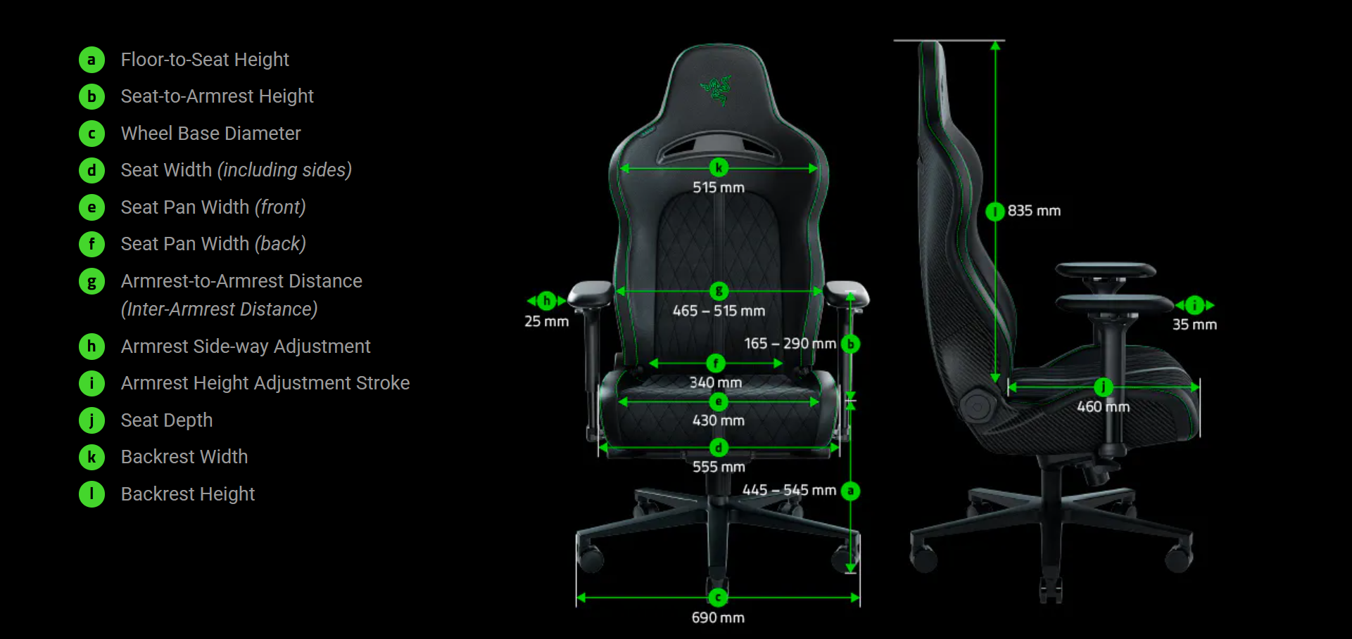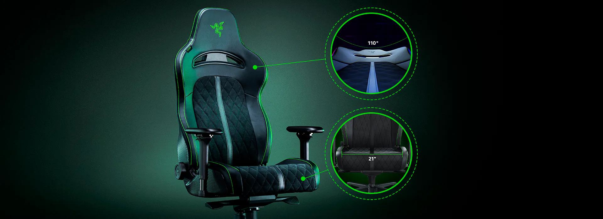 Through a combination of its unique 110° extended shoulder arches and 21" ultrawide seat base, the Razer Enki Pro gaming chair ensures optimal weight distribution for long-lasting comfort during gaming marathons.