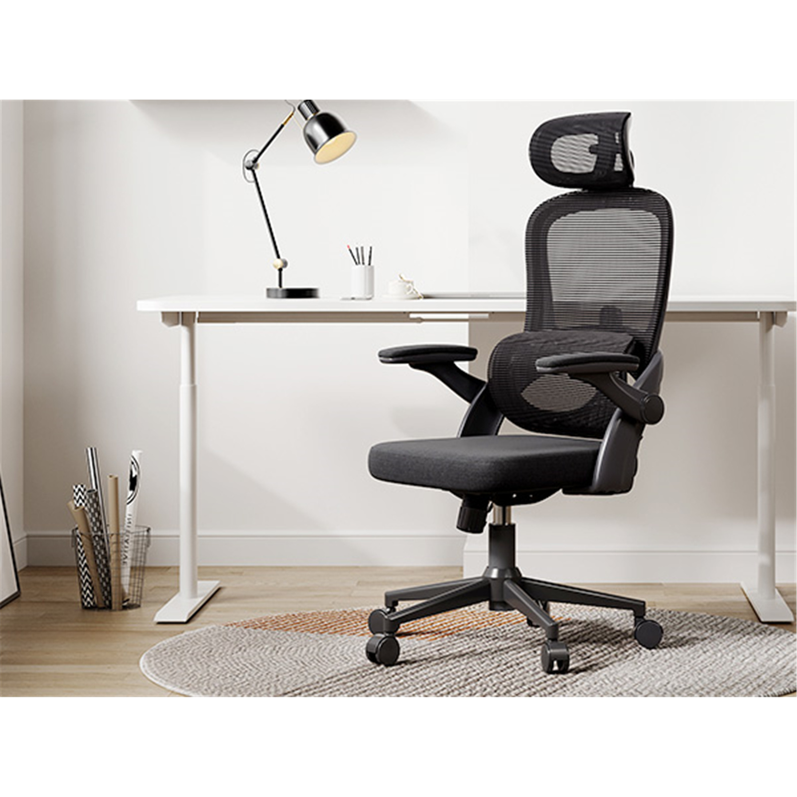 It boasts two main features that resonate with consumers: an enlarged and thickened seat cushion, providing ample comfort, and 3D flippable armrests that allow for relaxation and convenient storage. This chair is versatile and finds applications in work, leisure, and study scenarios.