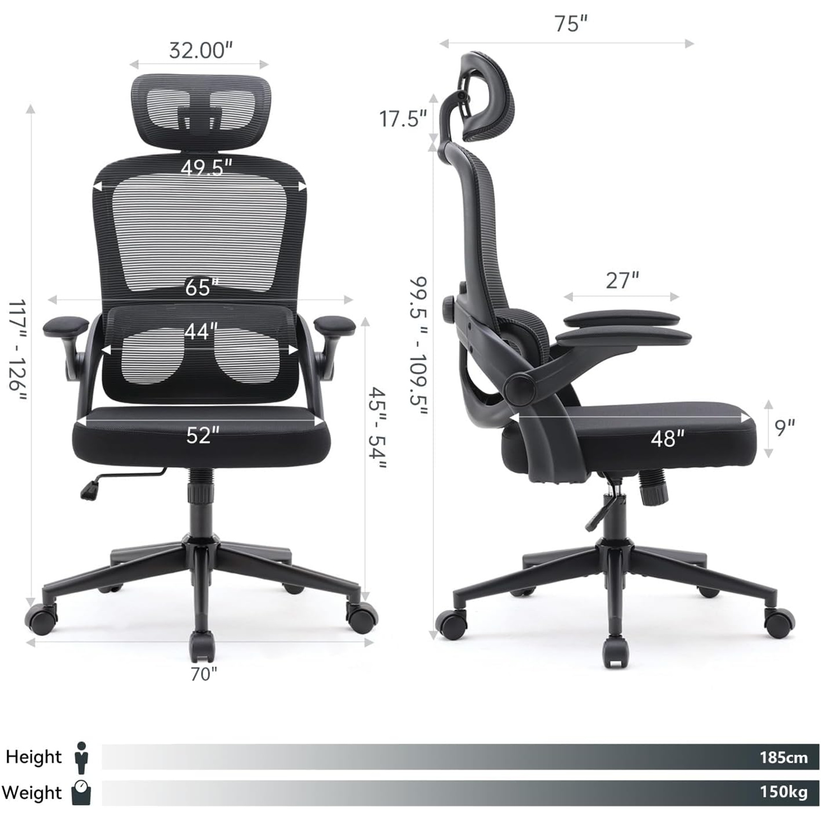 Customize your lumbar support with a flexible 6cm vertical adjustment, finding the perfect position for your lumbar region. The adaptive lumbar support automatically disperses pressure and contours to your lumbar area based on mesh elasticity.