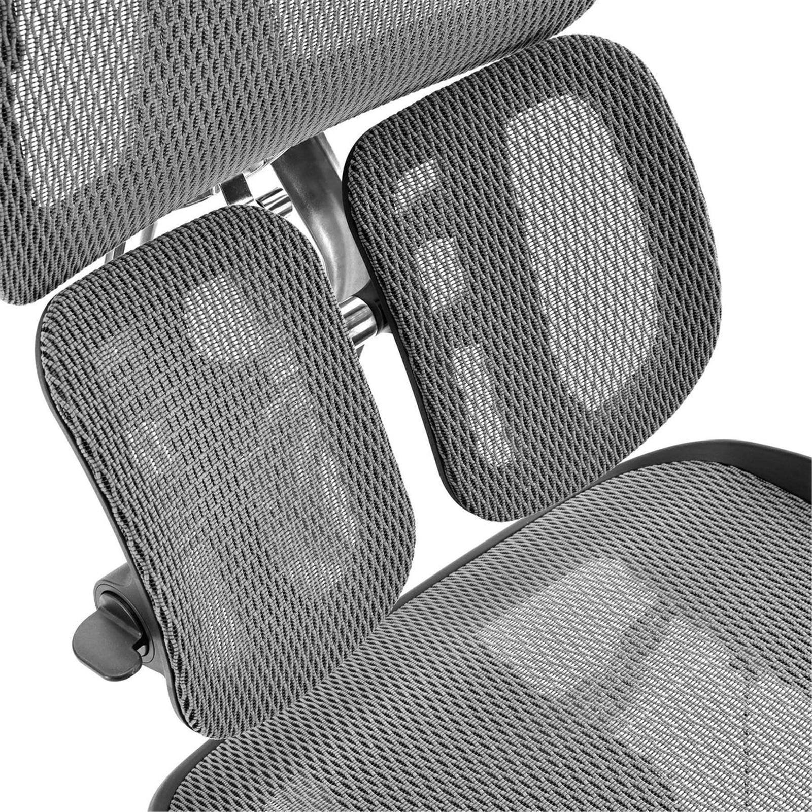 The dual dynamic lumbar support, shaped like wings, consists of two distinct pads to deliver adaptable and comprehensive lower back support. This feature accommodates a variety of body shapes and sitting positions. Additionally, the gas lift allows for precise lumbar adjustment between 90° and 105°, ensuring a perfect fit for every user.