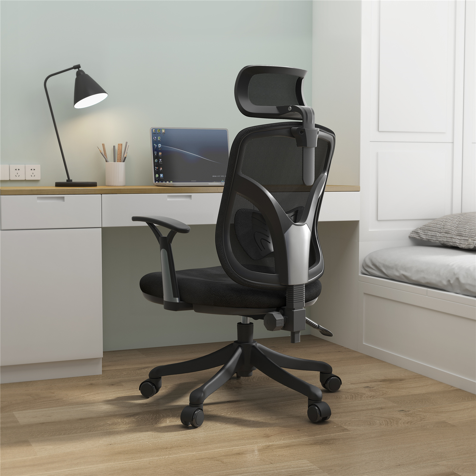 The chair offers a recline angle range of 105° to 135°. A 105° angle is ideal for focused office work, enhancing efficiency during long periods of sitting. Adjusting the seat to 135° provides a comfortable resting position, reducing fatigue and conserving energy for more productive work.