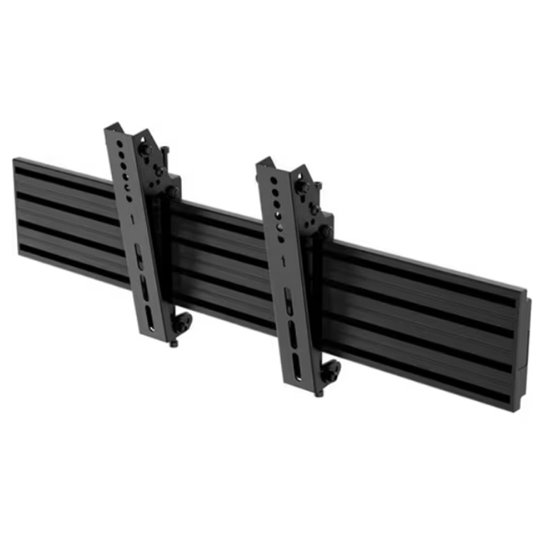 Ideal for single row, multi-screen installations, these brackets are designed to mount small to medium sized screens in a tilted position (up 20° subject to the screen size) along modular horizontal mounting rails. The universal VESA mounting pattern up to 200mm high suits small to medium size displays and allows them to be mounted in either landscape or portrait orientations. A simple hook-on design with the levelling screws on each bracket provide quick and easy pre and post-installation horizontal and vertical height adjustments.