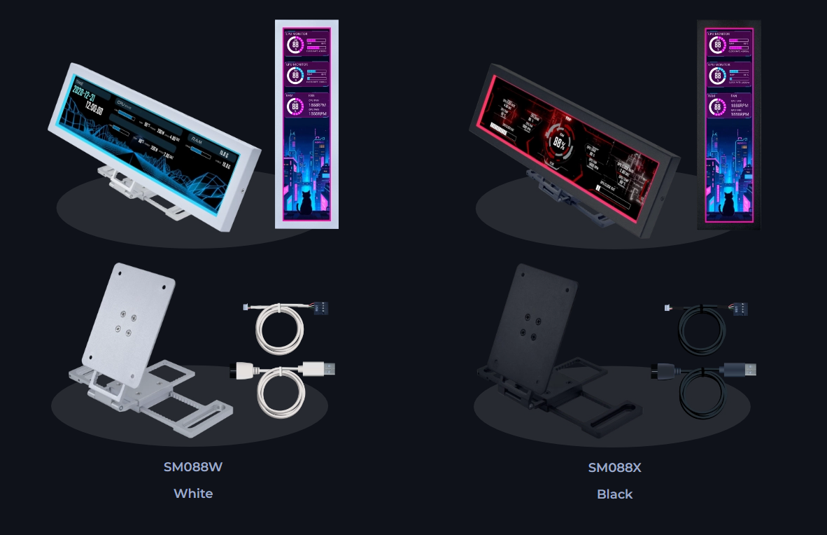Whether mounted inside or outside the case, the 8.8" Universal Screen offers versatile installation options on fan frames, case panels, or flat surfaces, giving you the flexibility to suit various needs and layouts.