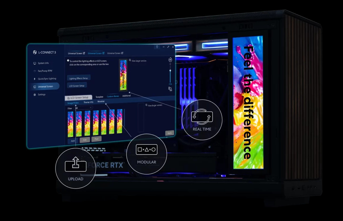- Supports L-Connect 3: templates, custom themes, video/image display