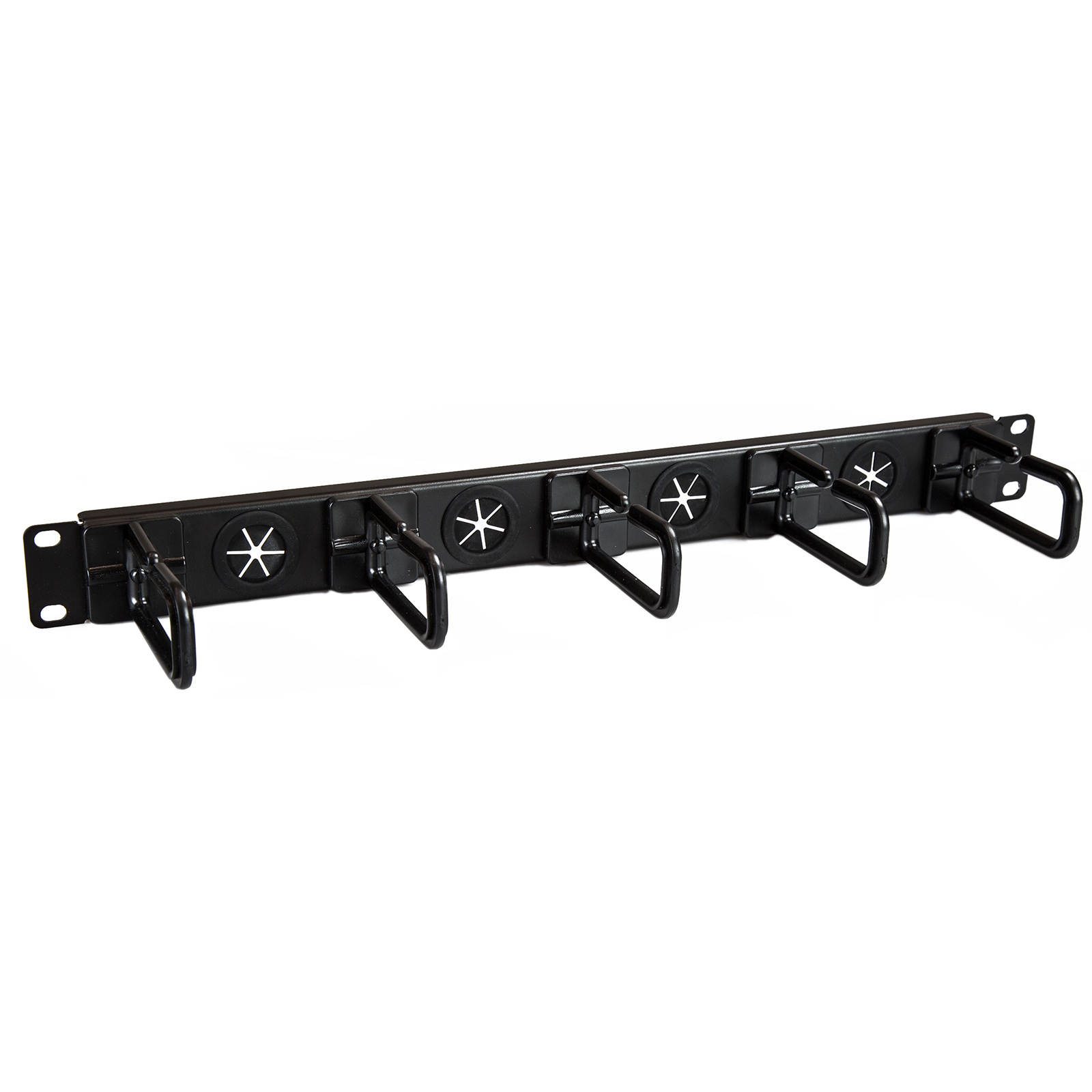 This cable management panel saves rack space with a 1U design. Despite the panel's low-profile it still provides plenty of cable management, with a combination of five D-ring hooks and four cable holes.