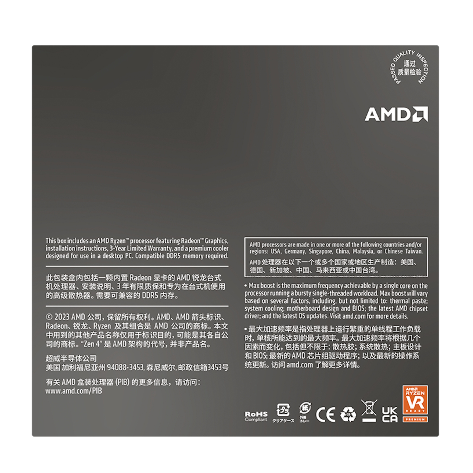 8 Core / 16 Thread - Max Boost 5.1GHz - 24MB Cache - AM5 Socket - 65W TDP - AMD Radeon 780M Graphics