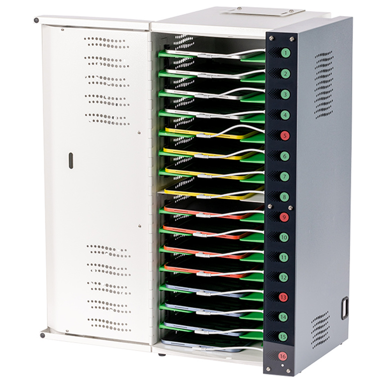 Multi device compatibility: Charge up to 16 iPad®, tablet, Chromebook devices, or other hand-held devices, with or without cases.