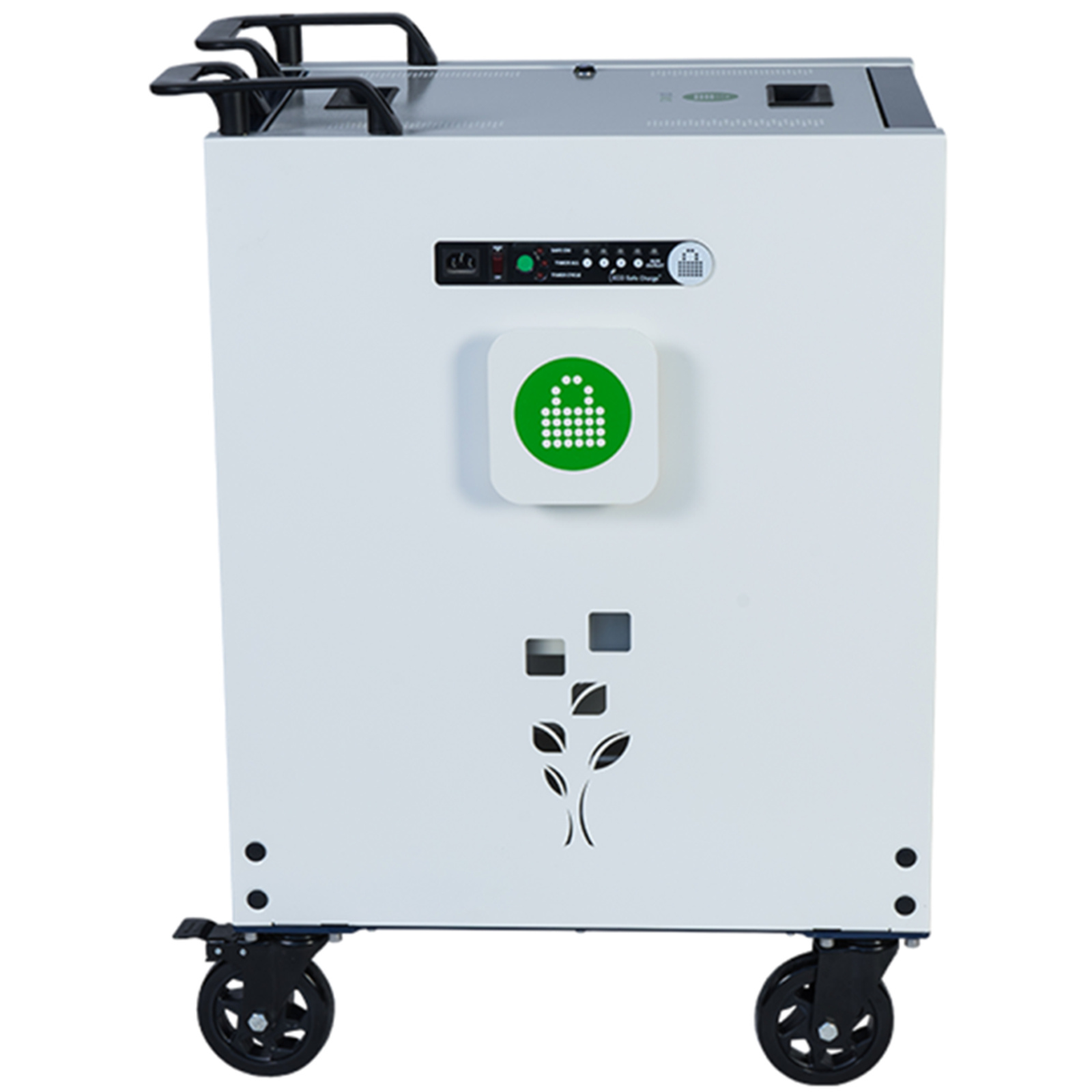 The remote controlled ECO Safe Charge™ Power Management System charges multiple laptops safely and efficiently. External lights allow you to easily see if your devices are charging