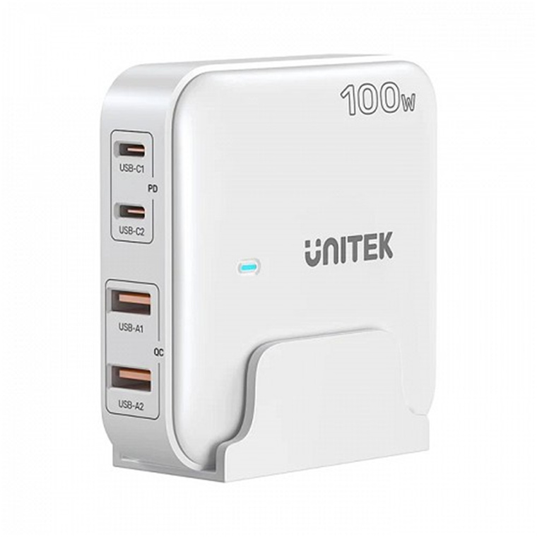 Unitek P1229AWH 100W Desktop GaN Charging Station with 2x USB-C PD Ports & 2x USB-A QC3.0 Ports - White