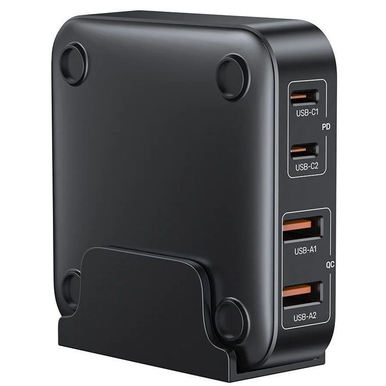 This charging station provides 2 USB-C ports at full speed of 70W (single port charging). It also comes with 2 USB-A ports for charging up to 30W. Even when charging 4 devices, its total output can go up to 63W (max). Supports PD3.0, QC3.0, and PPS fast charging standards.