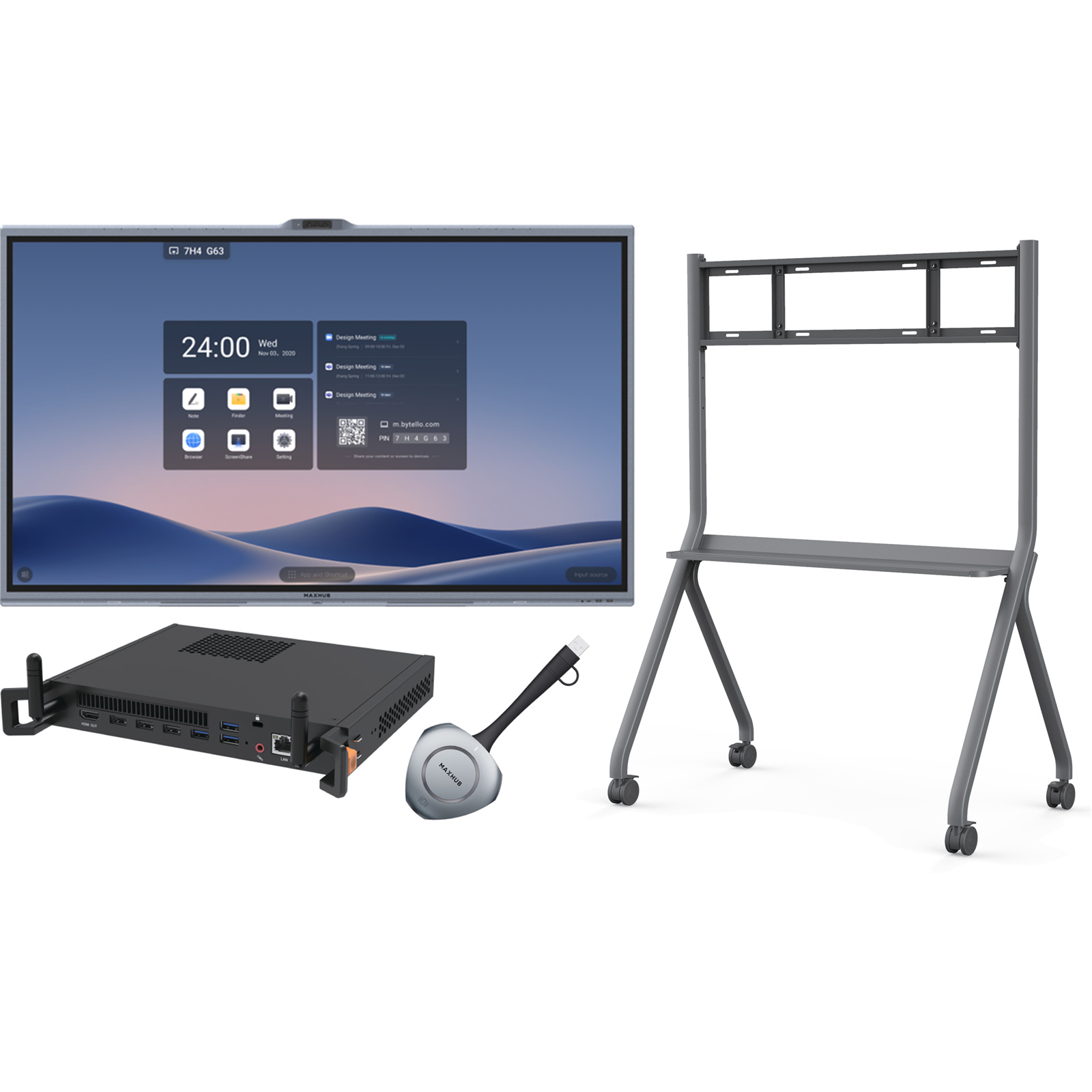 Maxhub 55" XBoard V7 All-In-One Interactive Display - WT13M Sharing Dongle Open Space Kit - Core i7 OPS - Mobile Trolley