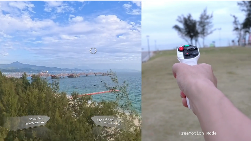 Meet the world's first FreeMotion control mode.⁶ No complex sticks, no steep learning curves. Just hold the Grip controller, point in any direction, pull the trigger, and A1 flies there. Intuitive, instant, and designed for everyone.