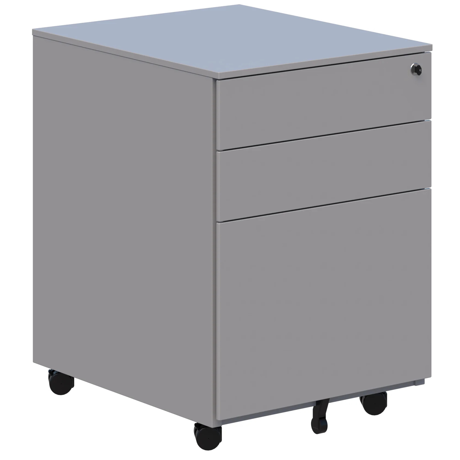 Accent Cube Mobile Pedestal - 575H x 410W x 500D - Silver - Central locking mechanism. Anti-tilt wheel on bottom drawer. 2x box drawers and 1x file drawer. Pen-tray and drawer dividers.Heavy duty ball bearing runners in drawers