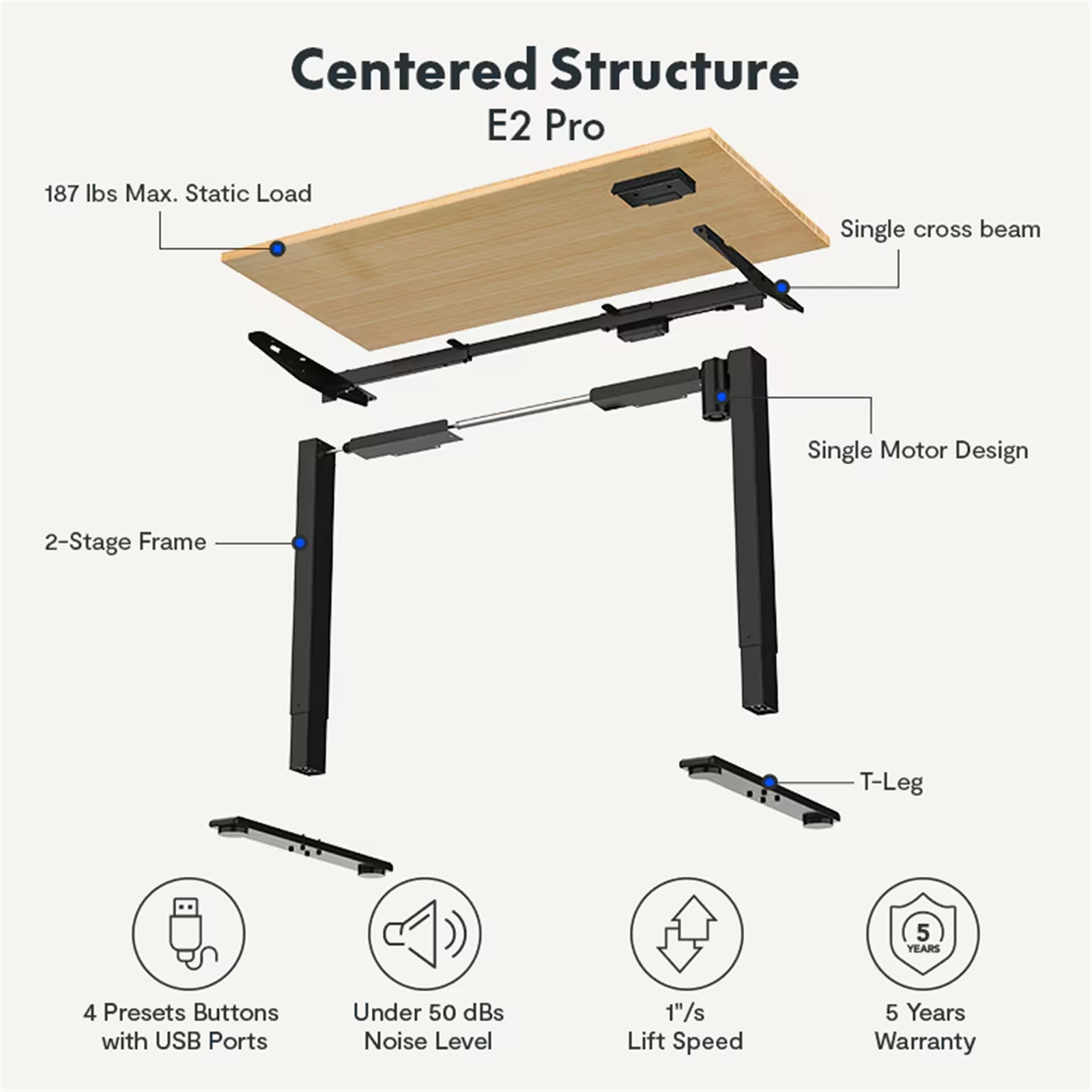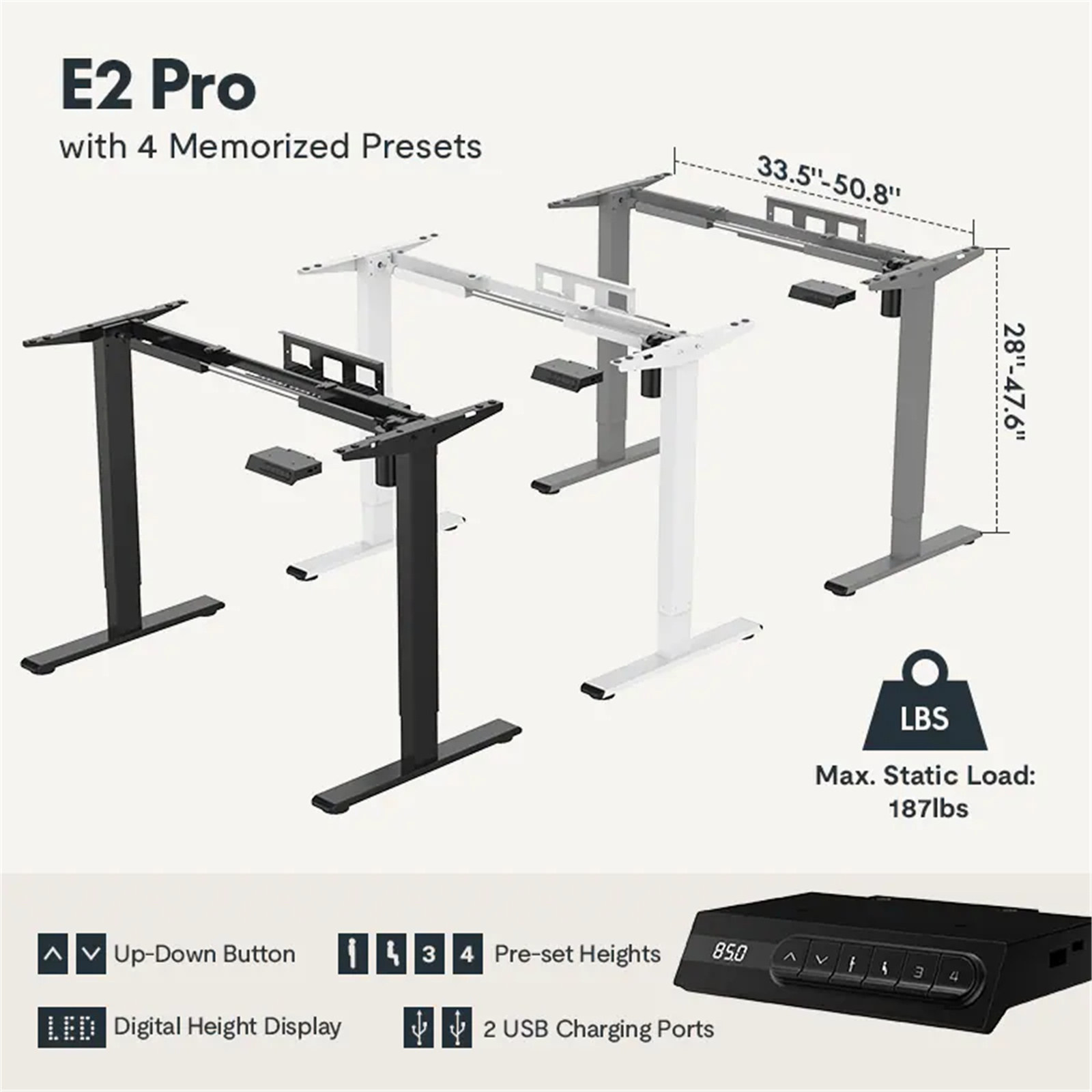 FlexiSpot E2 Pro Black Electric Standing Desk Frame Only - Single Motor - Max Load 70kg - Speed 25mm/s - Height Range 710-1210mm