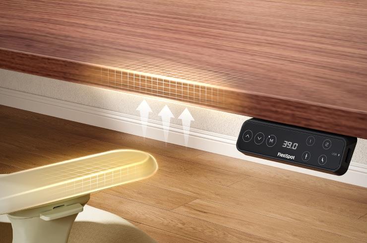 The traditional C-leg design reduces the stability of the lift table, while the T-leg frame affects the leg space when the table height is low. FlexiSpot was designed through extensive testing so that the frame is fixed in the perfect position to both increase leg space and not affect stability.