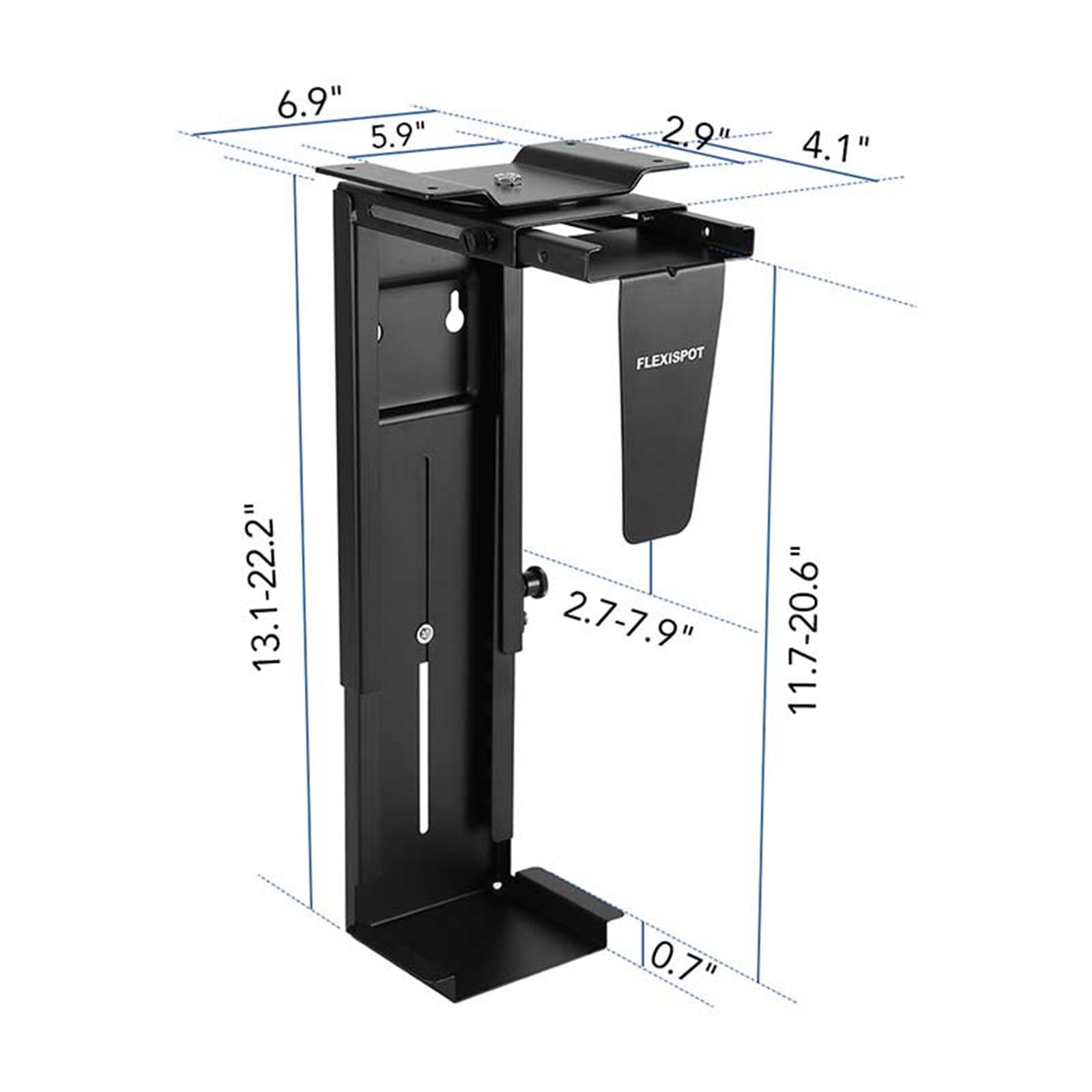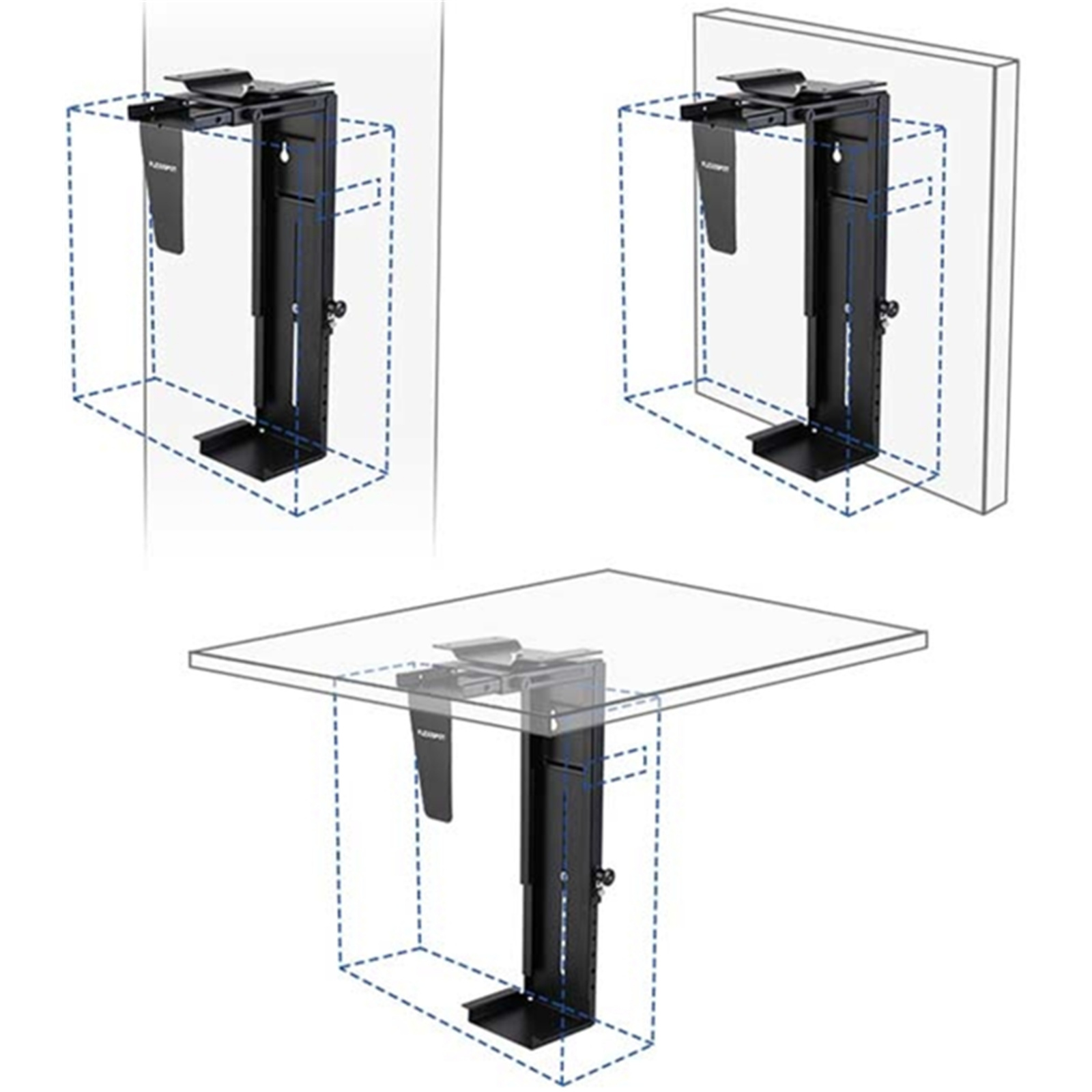 FlexiSpot Workstation Mount CH2B Under-Desk PC Mount Adjustable PC Holder, Height Adjust 300-565mm, Loading 30Kg, Thickness 70-200mm, NUC SFF Desktop Business PC Chasis Holder for Office & Home Study