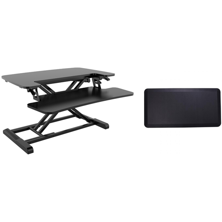 FlexiSpot Eco Ergonomic Deskalator Workstation With Standing Anti-Fatigue Mat - Work Surface 720x415mm, Removable Keyboard Tray Size 720x308mm, Height Adjustable 120-500mm, Stroke 380mm, Load Capacity 15kg, Black