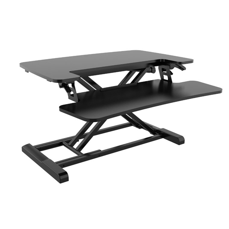 Double Layer Office Space -This adjustable standing desk converter with a wide desktop is super space-saving and has enough space for all of your gadgets, it can hold a computer monitor, paperwork, and tablet, phone, notebook, coffee, and so much more! An oversized keyboard tray that accommodates flexible setup options like a 17-inch laptop or a keyboard and mouse.
