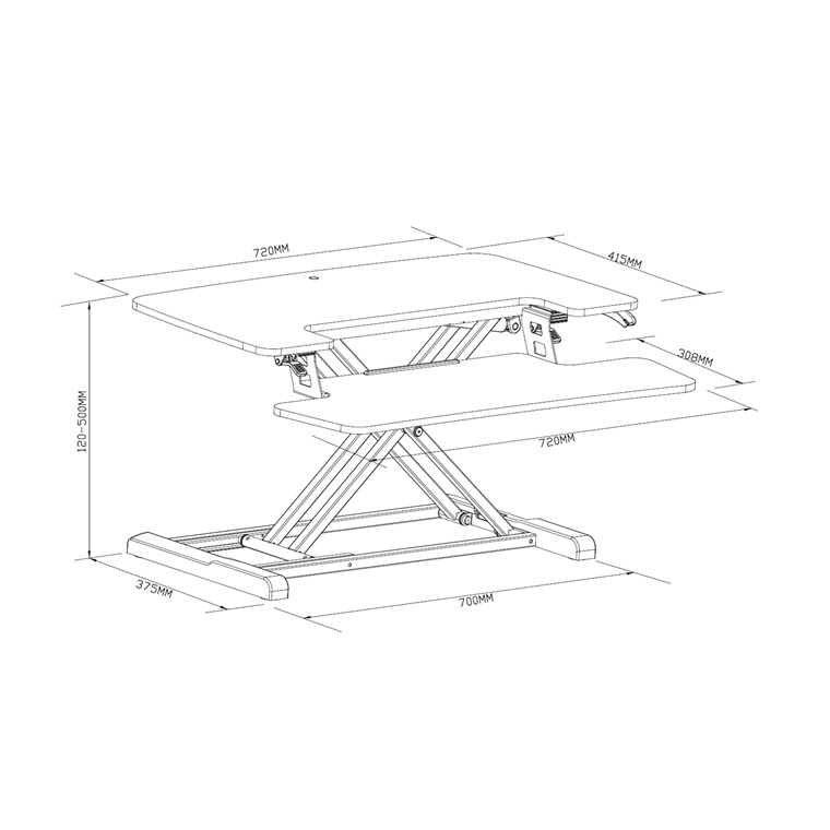 Straight Up & Down Movement - Adjustable workstation allows you to find the needed healthy balance between sitting and standing up throughout the day. Our sit-to-stand desk rises and folds vertically, within its own footprint. There's no need to make spatial accommodations, as may be required in comparable products.