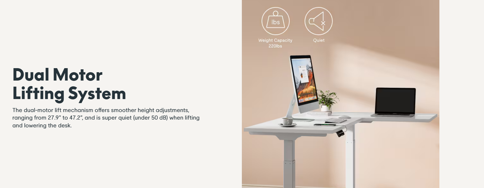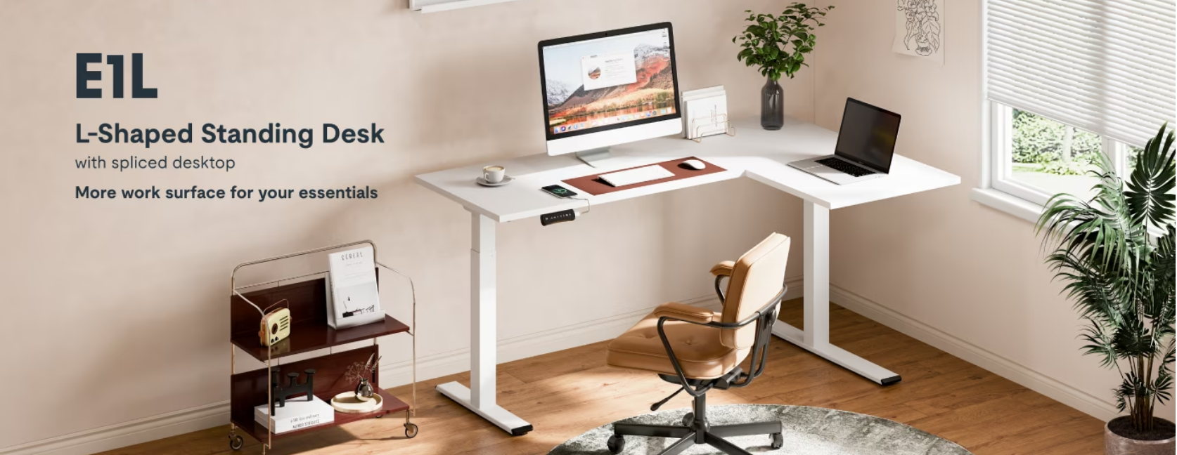 FlexiSpot E1L White L Shape Electric Standing Desk Frame Only