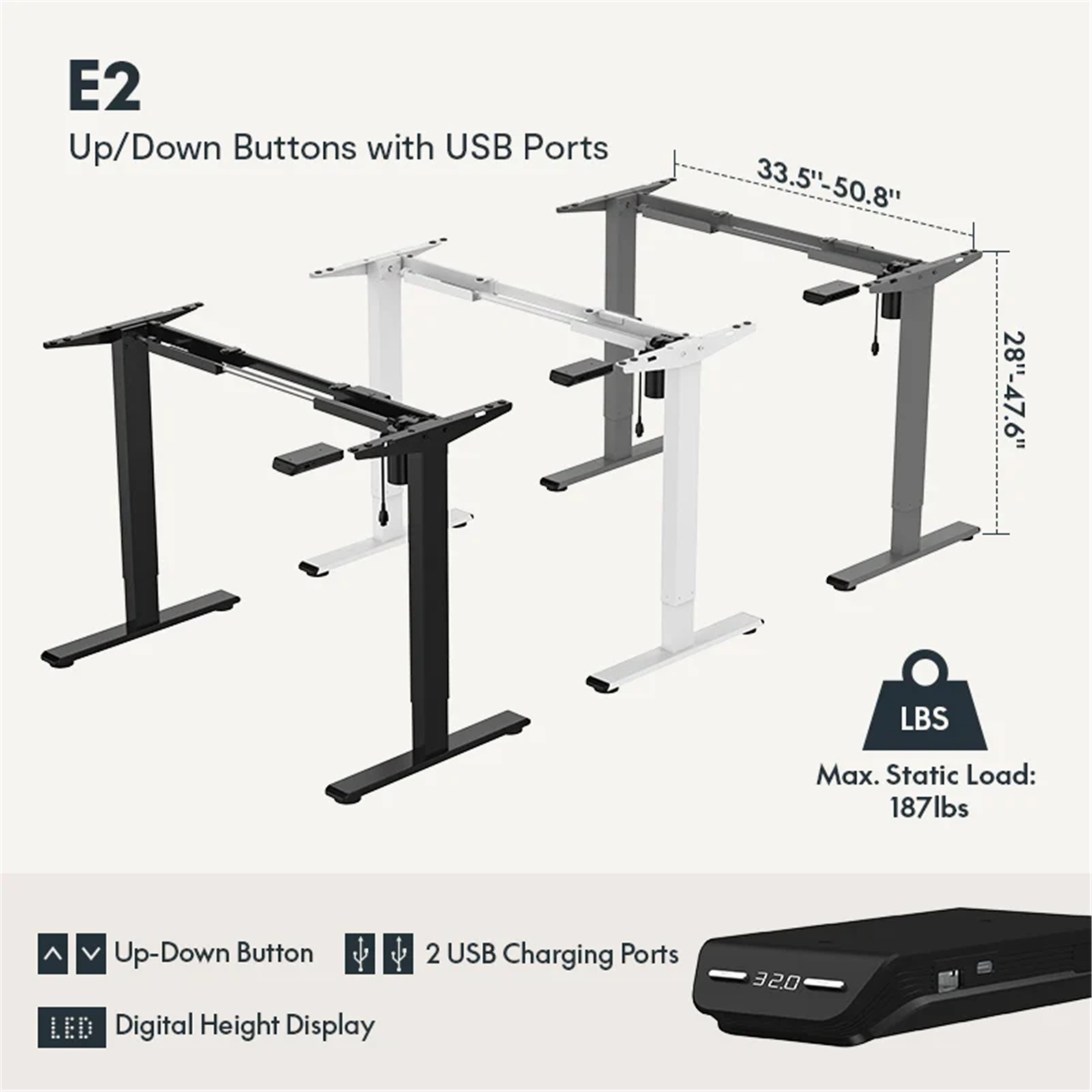 FlexiSpot E2 Essential Standing Desk - 1600x800x25mm - White Desktop/Black Frame - Single Motor - Height Adjustable Range 710-1210mm - Weight Capacity 70kg, Speed 25mm/s - UP/Down Controler With USB Port