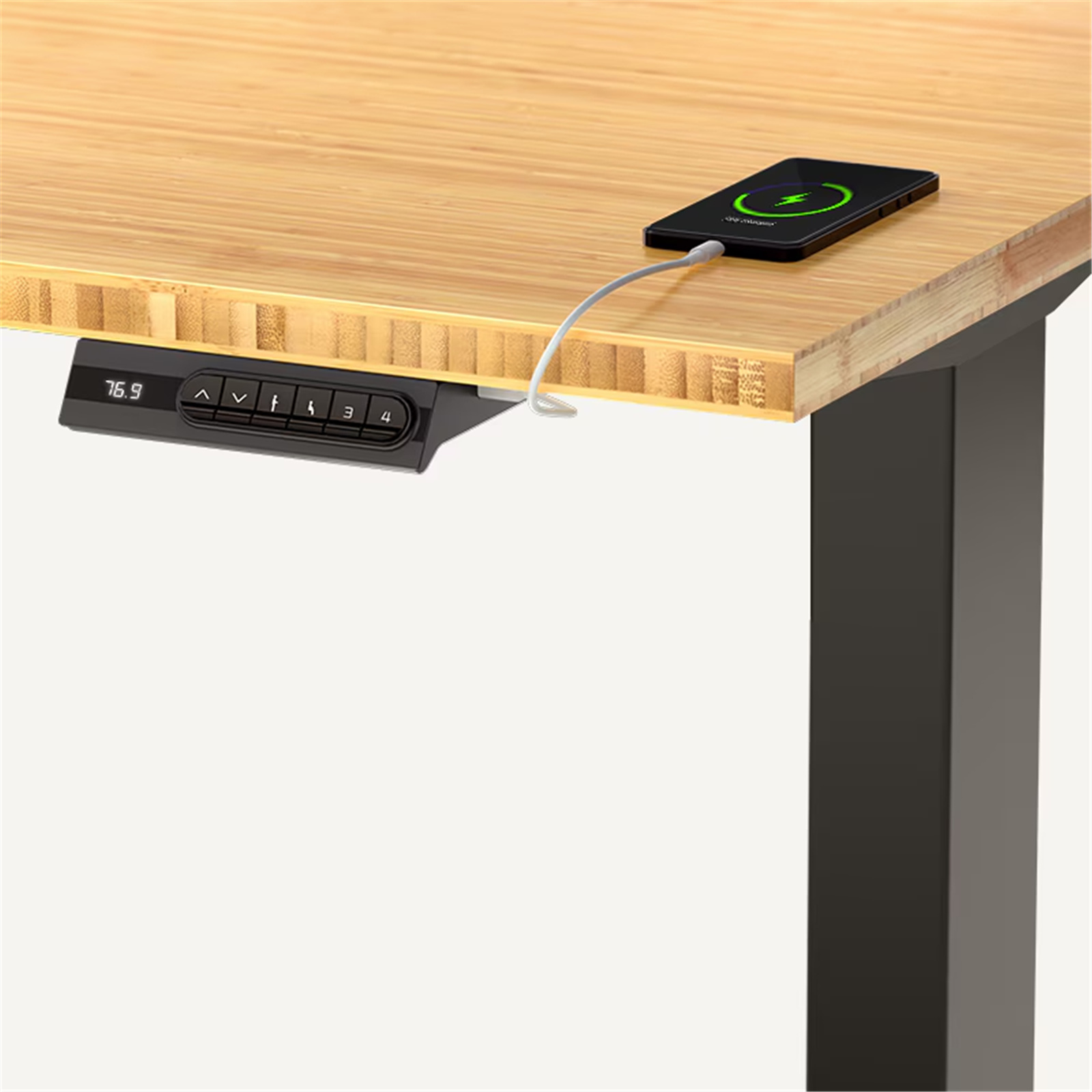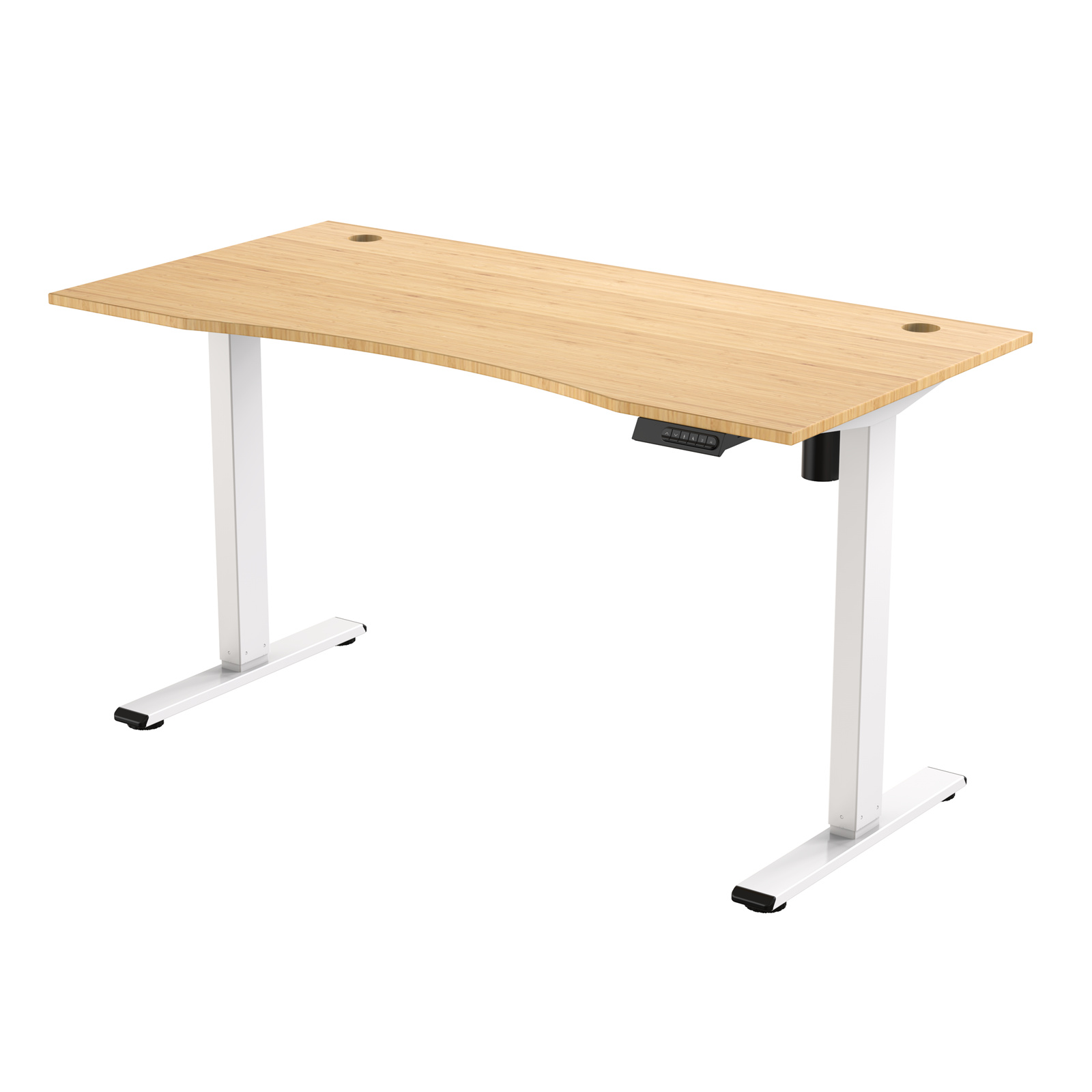 FlexiSpot E2 Pro Essential Standing Desk - 1400x700mm - Bamboo Curved Desktop/White Frame - Single Motor - Height Adjustable Range 710-1210mm - Weight Capacity 70kg, Speed 25mm/s - 4 Presets Buttons Keypad with USB Ports (1x Type-A, 1x Type