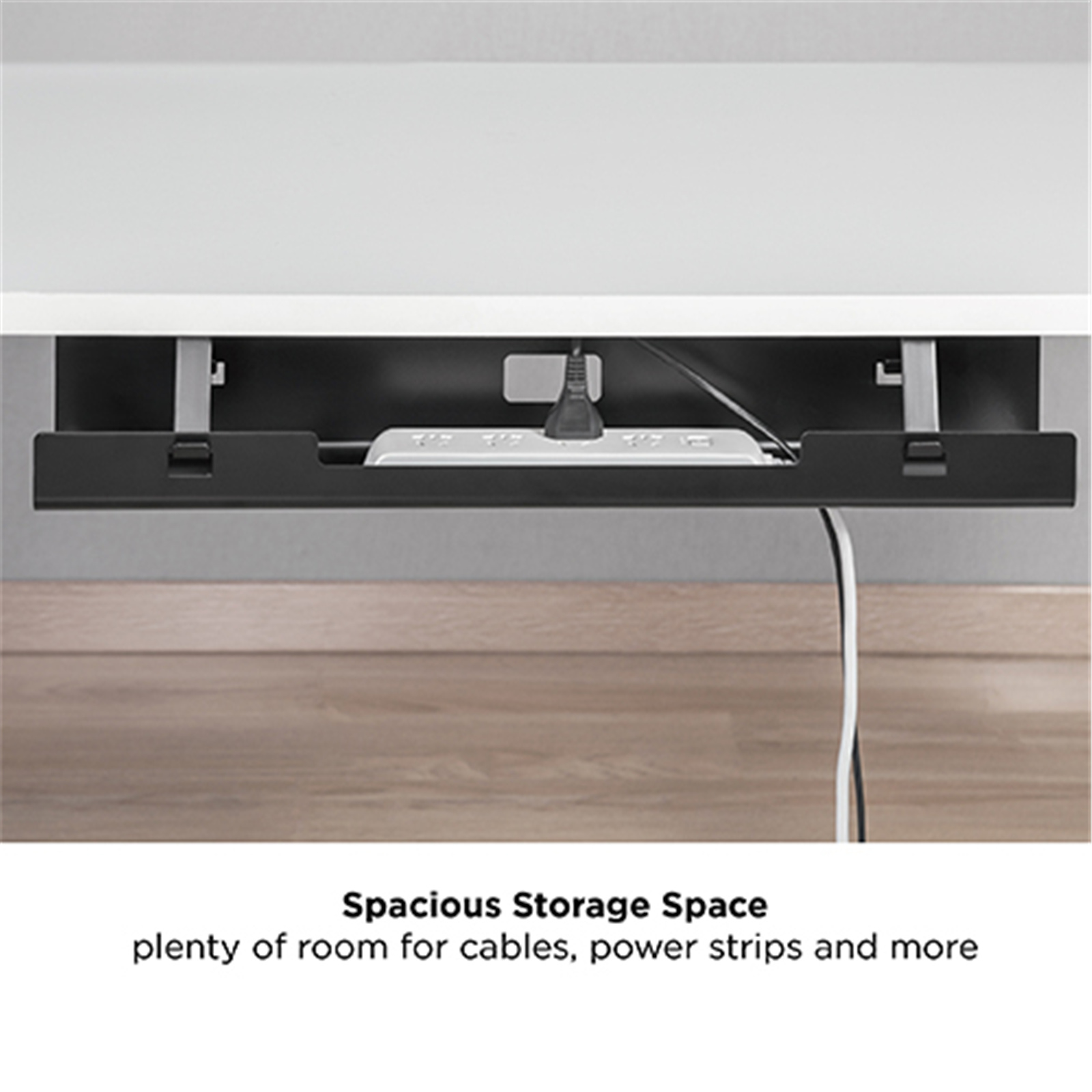 Maintain a neat and clean appearance underneath your standing desk. This Under-Desk Cable Management Tray provides plenty of storage space for cables, power strips and more. Made of powder-coated steel, this tray is sturdy and durable. Open design makes it easy to route and store cables. With included mounting hardware and easy to follow instructions, the installation is as easy as 1-2-3. Create an eye-pleasing and comfortable workplace with KONIC Under-Desk Cable Management Tray