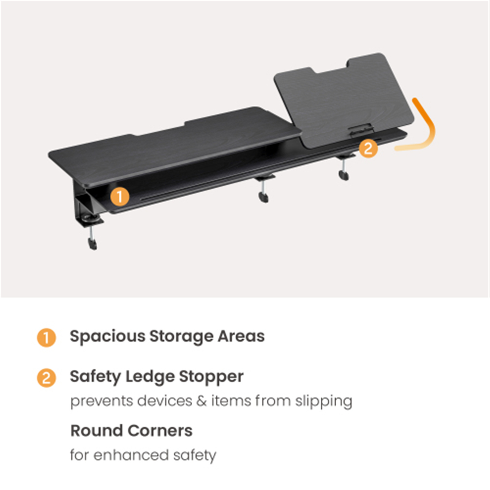 The Clamp-On Monitor & Laptop Riser provides a streamlined, ergonomic workspace upgrade. Supporting both monitors and laptops, this riser improves desk organization and creates an optimal screen height to help reduce neck and eye strain. With a simple clamp-on installation, it offers stable, secure positioning ideal for a variety of setups. Large cable slot compatible with monitor mount, also for cable management. Laptop riser with stepless angle adjustment helps find the perfect position for better posture and comfort. Perfect for work, gaming, or study.