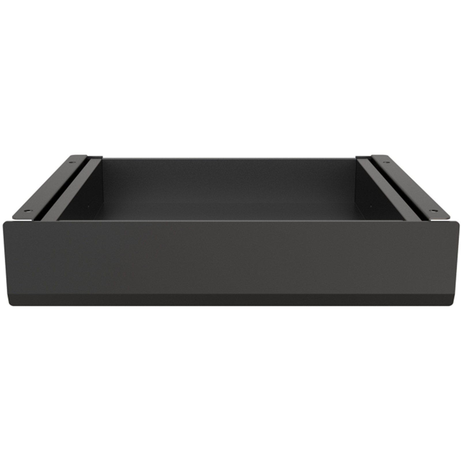 Its black/white coating gives it a simple and minimalistic look. This convenient storage drawer mounts under your desk, raises and lowers with it as you adjust heights from sit-to-stand keeping your things in easy reach. The drawer's slim three-inch profile ensures that it won't take up your precious legroom, leaving your knees plenty of space to move.