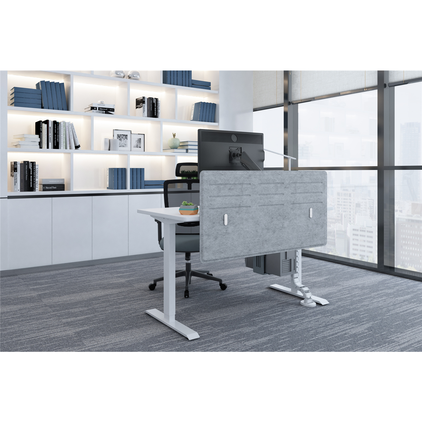 - Creates privacy above or below the desksurface.