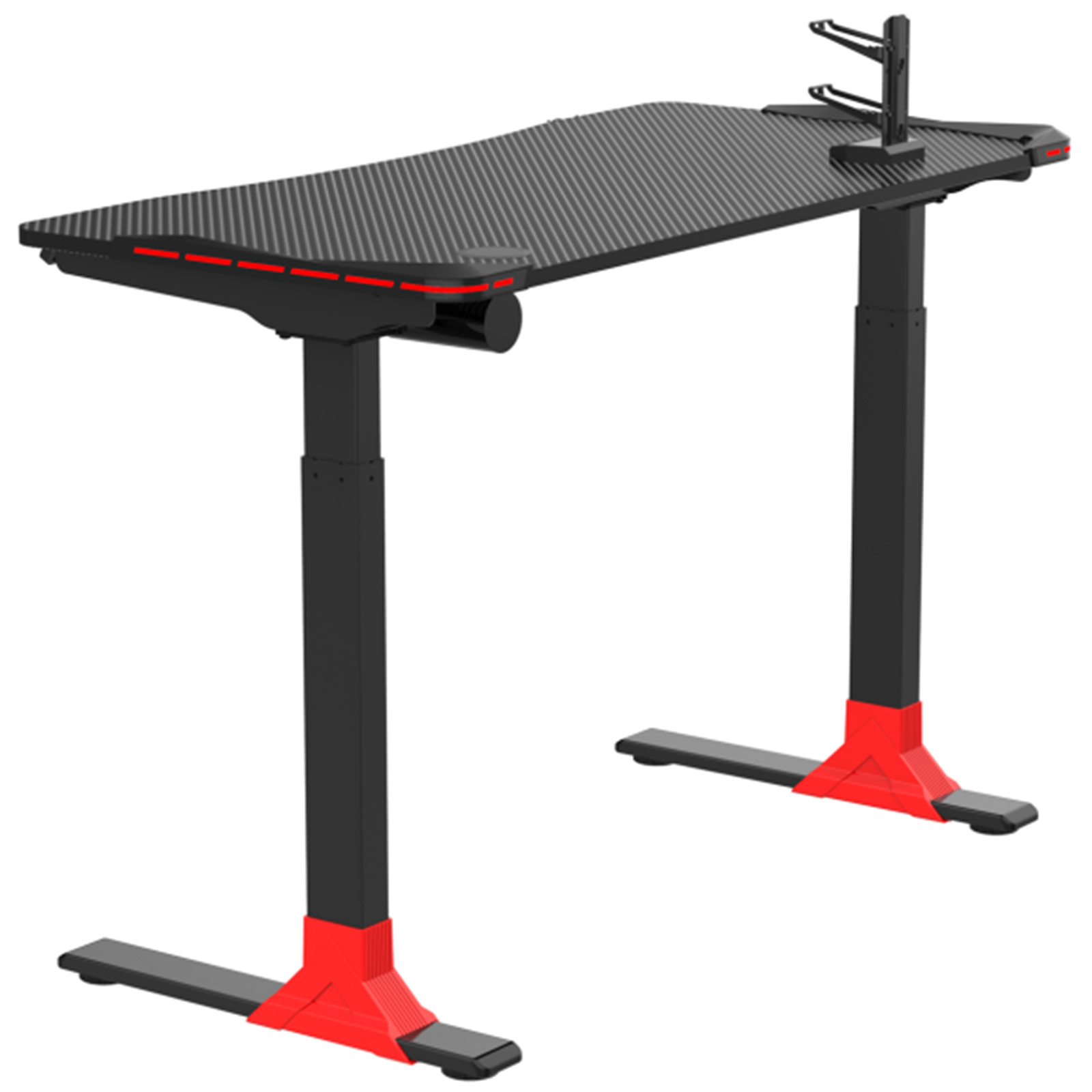 The carbon fiber textured PVC desktop is water- and stain-resistant and is non-slip, making it easy to keep everything in place during intense gaming sessions.