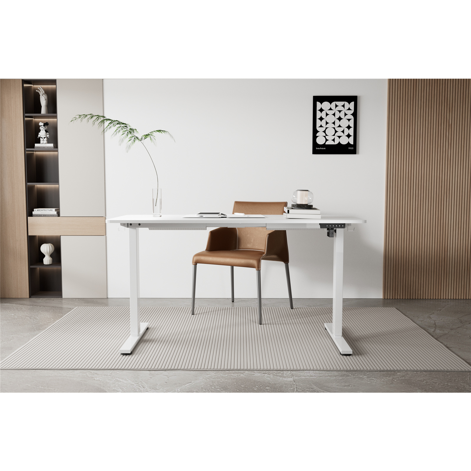 Loctek Ergonomic Basic Standing Desk - Single Motor - 1400x600x16mm Spliced Tabletop - White - Weight Capacity 70KG - Memory Control Panel - 2 Stage Height Adjustable 735-1180mm - Speed 15mm/s - Sound <50dB