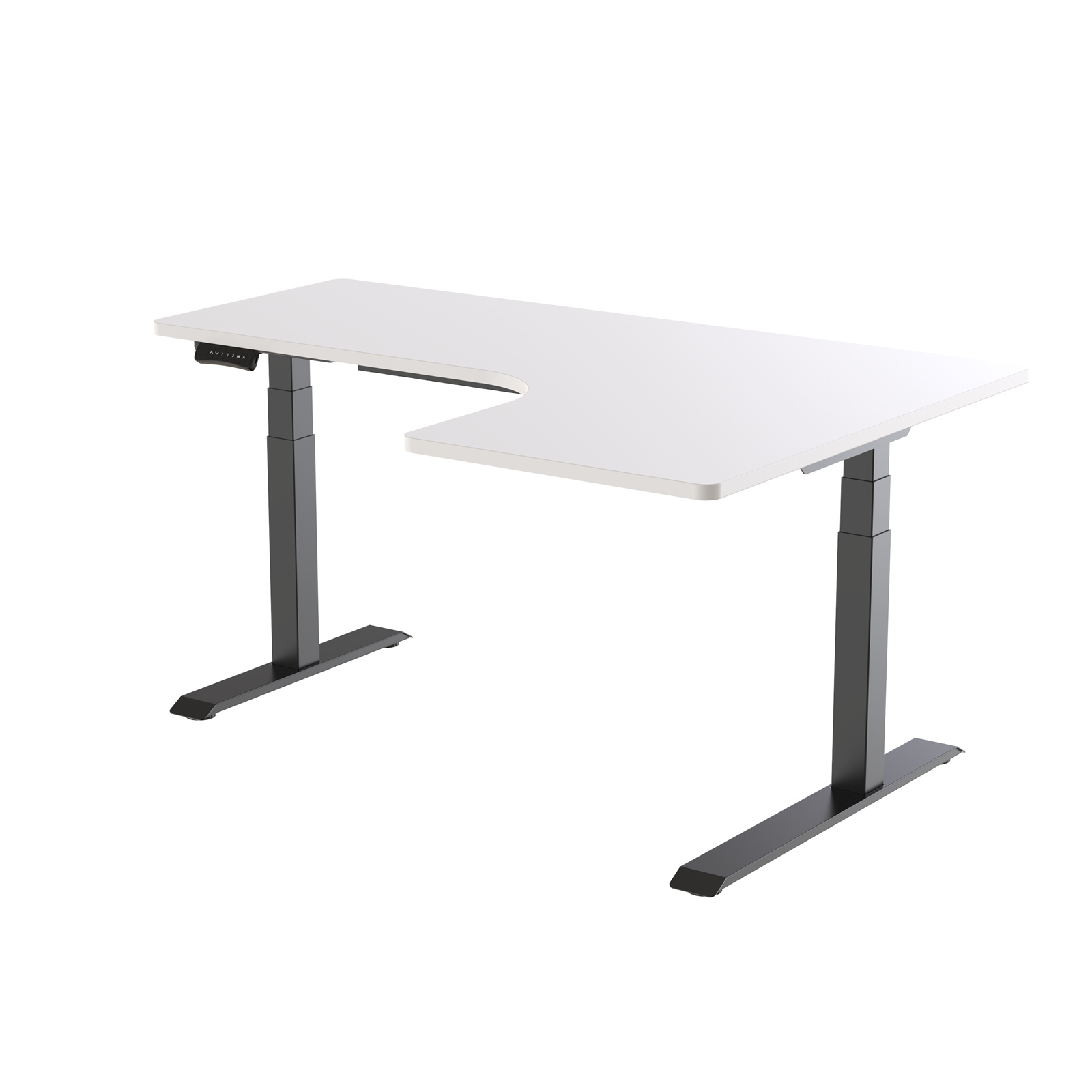 Loctek ET223DL 1600x1100x595mm Ergonomic White Right L-Shape With Black Frame Corner - Max Load 125KG, Electric Height Adjustable Desk With Dual Motors, Height Adjustment 580-1230mm, Holeless Design Column, with Anti-Collision Safety System