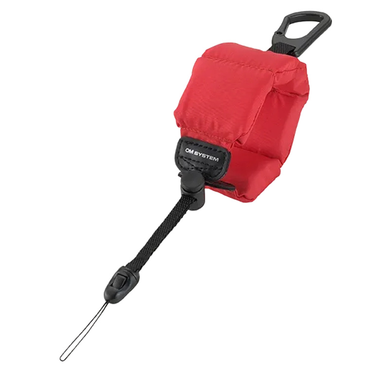The OM SYSTEM CHS-09 TG Float Strap is a bright red, floating hand strap designed for Tough series cameras-including the TG-7. It provides positive buoyancy to prevent cameras from sinking in water and features added security during aquatic activities.