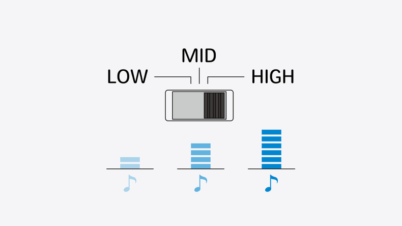 Low (-4 dB) / Mid (0 dB) / High (+6 dB)